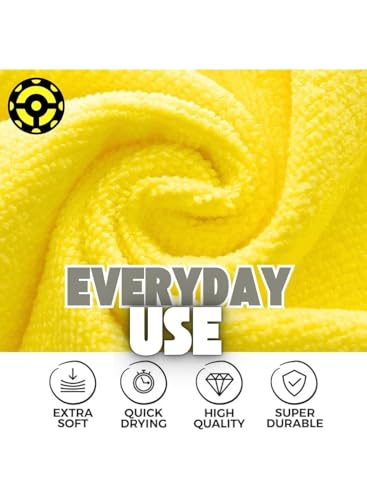 Generic - مناشف تنظيف فاخرة من المايكروفايبر من ام تي، عالية الامتصاص، خالية من الوبر، خالية من الخدوش، ناعمة ومتينة، متعددة الاغراض للسيارات والزجاج والمنزل والمطبخ وصالة الالعاب الرياضية والالكترونيات، اصفر