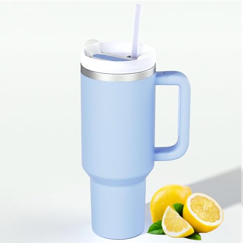 MTZ - كوب سعة مع غطاء وماصة، كوب معزول مع مقبض، زجاجة مياه من الفولاذ المقاوم للصدأ مع مقبض، كوب قهوة مثلجة للسفر من من ام تي زد، 1.18 لتر (أزرق سماوي)