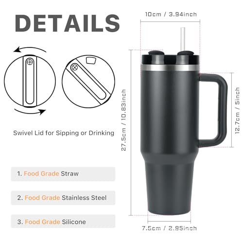 - 1. المتانة: مصنوع من الستانلس ستيل عالي الجودة، تم تصميم هذا الكوب بسعة 40 اونصة مع مقبض وقشة لتحمل التلف الناتج عن الاستعمال اليومي، مما يضمن استخدامًا طويل الأمد لمشروباتك المفضلة.