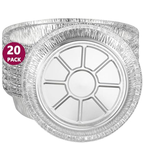 MUAMAX - مواماكس صواني فويل للاستعمال مرة واحدة مقاس 9 انش من 20 قطعة، اطباق فطيرة من القصدير من الالومنيوم، صينية خبز دائرية، اطباق فطيرة فطيرة للحفلات والخبز وتخزين الطعام، حاويات الوجبات الجاهزة
