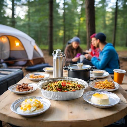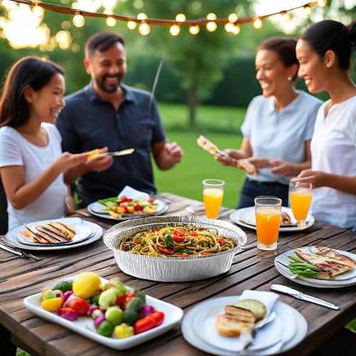 - 【صواني ألومنيوم عملية】صواني القصدير القابلة لإعادة الاستخدام الخاصة بنا مناسبة للتحميص والشوي والخبز والتجميد والطهي وتسخين بقايا الطعام وأكثر من ذلك. يمكنك استخدام أطباق الرقائق المعدنية للحفاظ على الطعام طازجًا وطهي الفطائر اللذيذة والفطائر والكعك والأوعية المقاومة للحرارة وما إلى ذلك، مثالية للحفلات والمدرسة والمكتب والنزهات والمشي لمسافات طويلة والوجبات السريعة والسفر والشواء وما إلى ذلك.