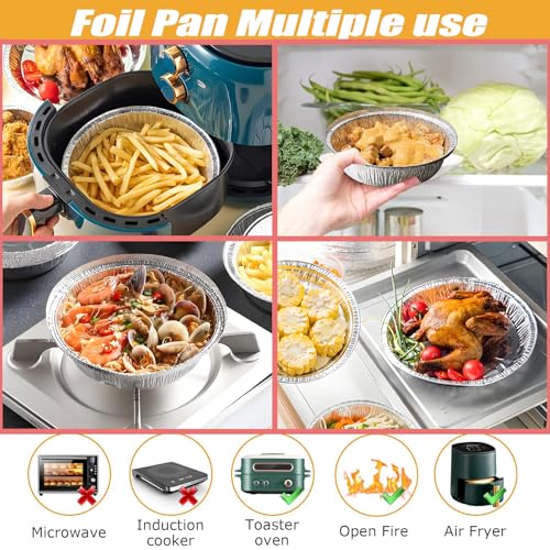 - 【توصيل مثالي للحرارة】صواني الرقائق المعدنية المستديرة مصنوعة من رقائق الألومنيوم عالية الجودة، صواني الطعام المصنوعة من الرقائق المعدنية الخاصة بنا غير سامة وقوية ومتينة مع مقاومة لدرجات الحرارة العالية من -25-250 درجة مئوية، والتي يمكن أن تساعد على تسخين الطعام بالتساوي، مثالية للفرن والثلاجة واللهب المكشوف وما إلى ذلك. لطهي الطعام اللذيذ وتخزينه.