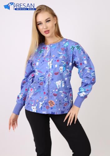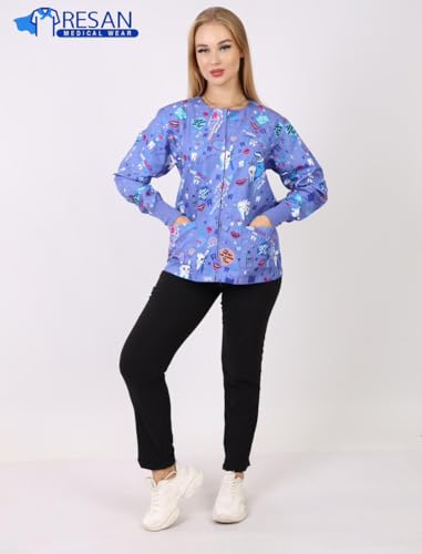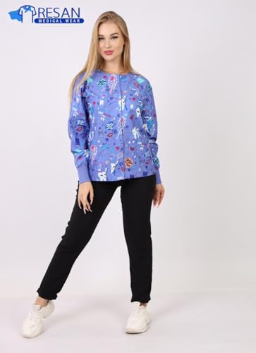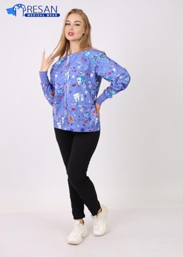 Resan Medical wear - معطف طبي مطبوع للمستشفيات للجنسين من مواف - غطاء رأس للجراحة - طبيب بيطري - زي طبي