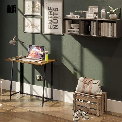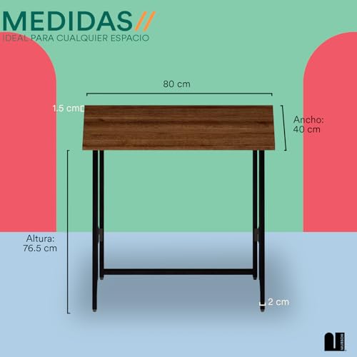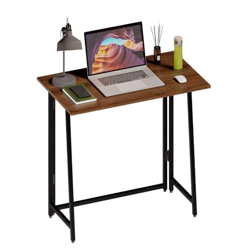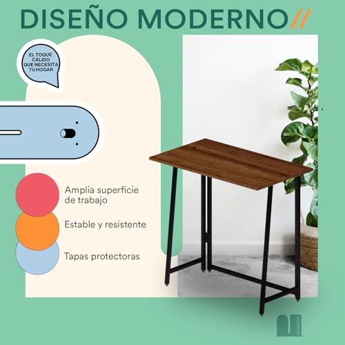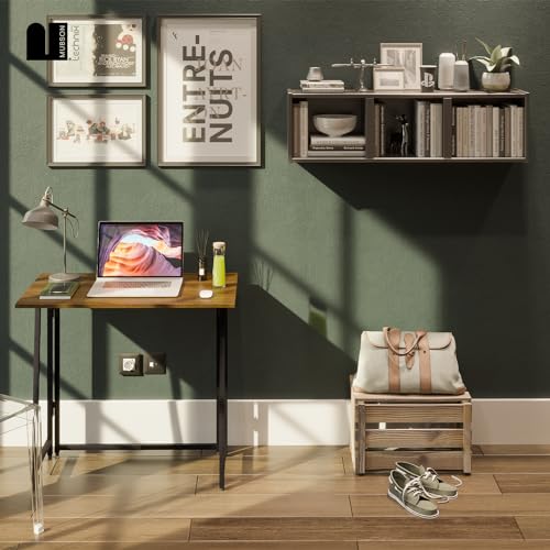 MUBSON - مكتب صغير بسيط قابل للطي بسطح مقاس 80 × 40 سم مثالي لغرفة النوم او الدراسة طاولة قابلة نمط صناعي لابتوب من موبسون بني خشب