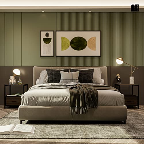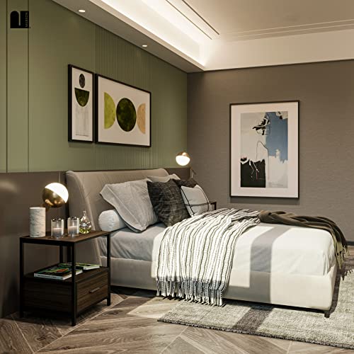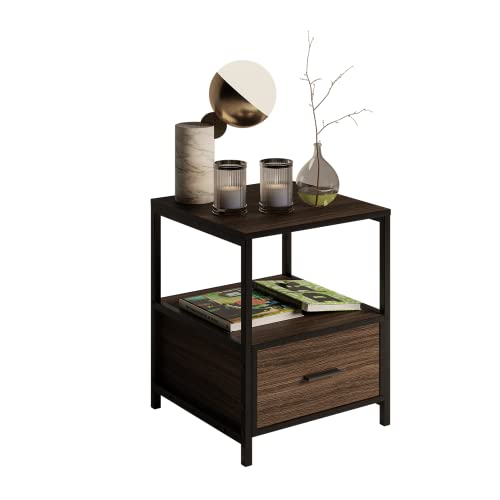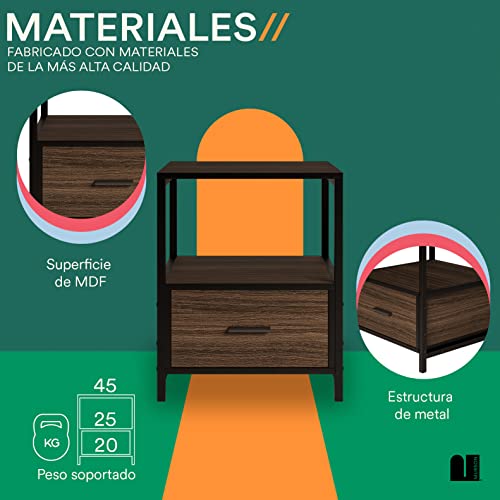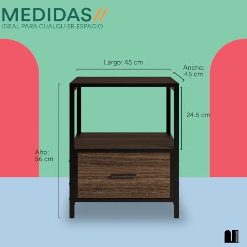 MUBSON - طاولة بجانب السرير لغرفة النوم أو غرفة المعيشة مع رف مزدوج ودرج تريفي سطح خشبي 45 × سم من موبسون