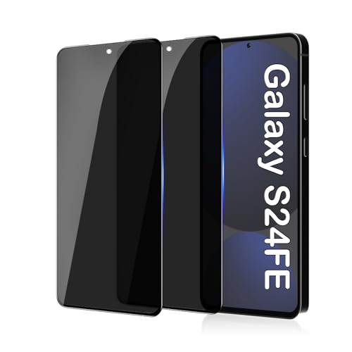 MUCDE - واقي شاشة من الزجاج المقوى للخصوصية، شاشة حماية لموبايل سامسونج جالاكسي S24 FE بتصميم مضاد للتجسس والخدش من موكدي [قطعتين]، لا يشكل فقاعات، درجة صلابة 9H