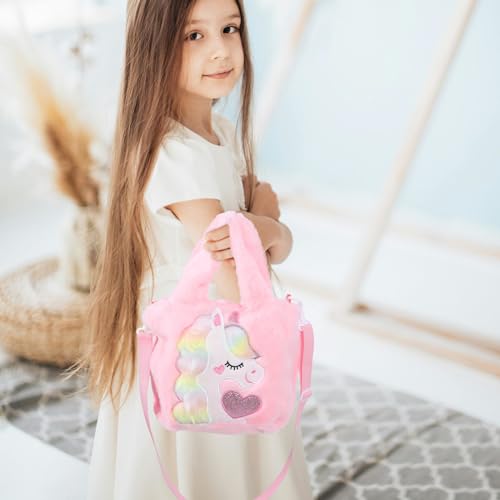 MUCKLILY - محفظة طويلة تمر بالجسم بتصميم يونيكورن للبنات والاطفال من ماكليلي، جيب متحرك بمشبك بنمط لطيف، لون بينك، مقاس M