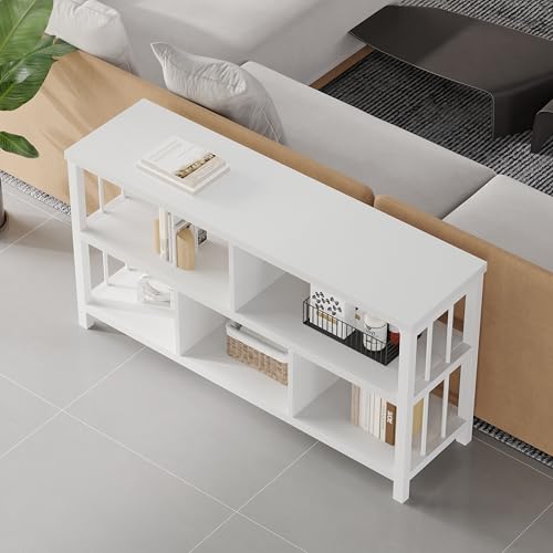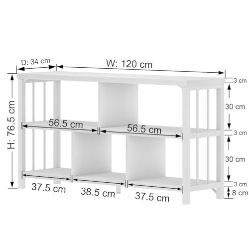 Mudmasa - وحدة رفوف مكتبة من طبقتين مع 5 مساحات تخزين لغرفة المعيشة وغرفة النوم والدراسة والمطبخ بتصميم صناعي 34 × 120 × 76.2 سم لون ابيض من مودماسا
