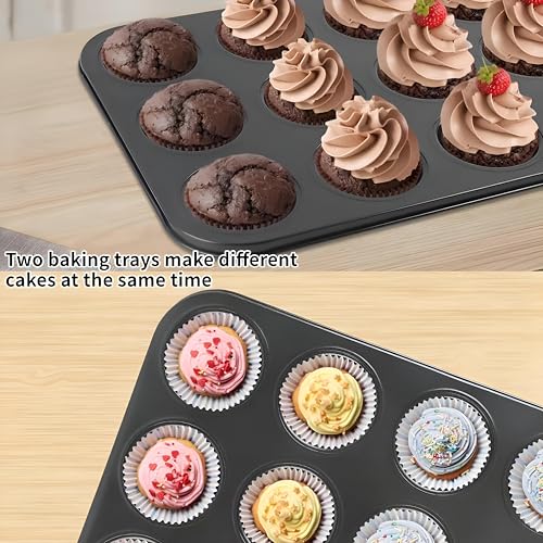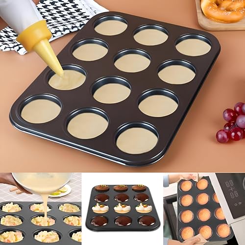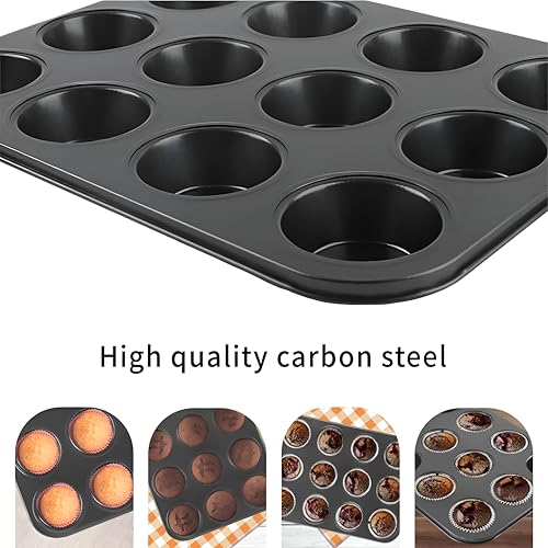 Generic - قالب مافن - مقلاة من الستيل الكربوني شديد التحمل مع طلاء ممتاز غير لاصق لتحرير سلس، تصميم 12 كوب مثالي لخبز المافن او الكب كيك بالتساوي وبدون عناء في المنزل او المخبز
