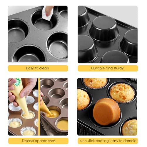 - صواني مافن متعددة الاستخدامات: مجموعة قوالب مافن غير لاصقة مثالية للخبز اللذيذ والكيكة والبسكويت والعشاء والمافن والكب كيك.