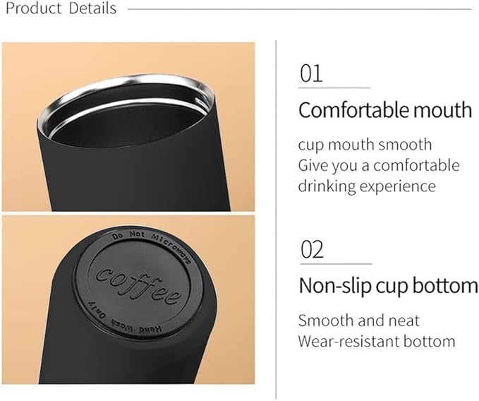 Generic - مج قهوة معزول بتقنية التفريغ الهوائي من الفولاذ مقاوم للصدأ يحافظ على المشروبات الساخنة والباردة، مج قهوة حراري بجدار مزدوج خالٍ من مادة بيسفينول أ ومضاد للانزلاق ومانع للتسرب (سعة 500 مل) (أسود)