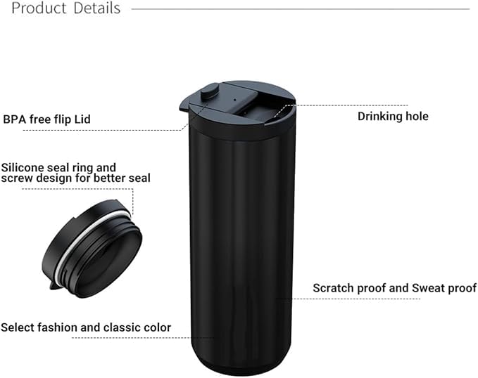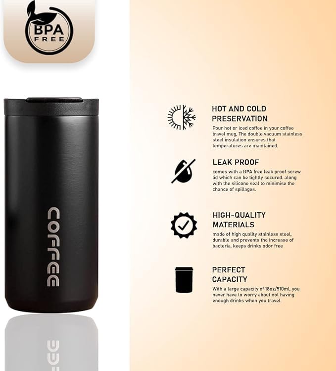 - سعة كبيرة: بسعة كبيرة تم تصميم كوب القهوة هذا لاستيعاب الكافيين اليومي، مما يسمح لك بالاستمتاع بالمزيد من مشروباتك المفضلة أثناء التنقل. قل وداعًا لإعادة ملء الكوب باستمرار.