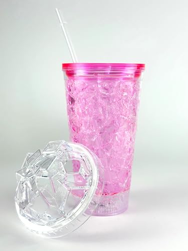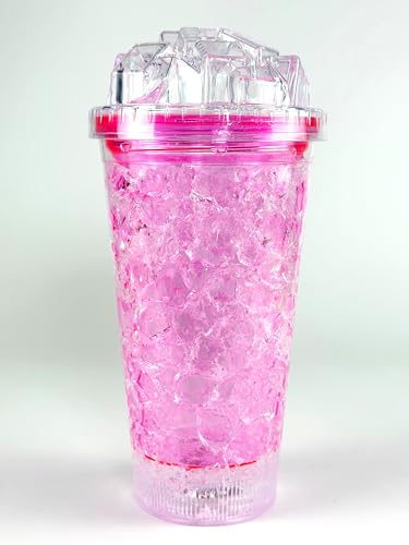 Generic - مج - كوب ثلجي، كوب فريزر من الاكريليك، كوب شرب صيفي، كوب عصير ثلجي بجدار مزدوج، مع شفاطة (أرجواني)