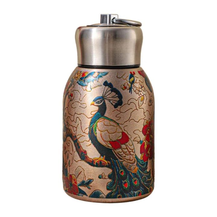 Generic - كوب قهوة صغير معزول بتفريغ الهواء بسعة 300 مل، كوب من الستانلس ستيل للمشروبات الساخنة والباردة، غطاء مانع للتسرب، كوب محمول قابل لاعادة الاستخدام للمكتب والسفر وصالة الالعاب الرياضية F-1538 (طاووس)