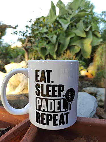 Open Island - مج مزين برسومات وعبارة ** EAT من اوبن ايلاند SLEEP PADEL REPEAT