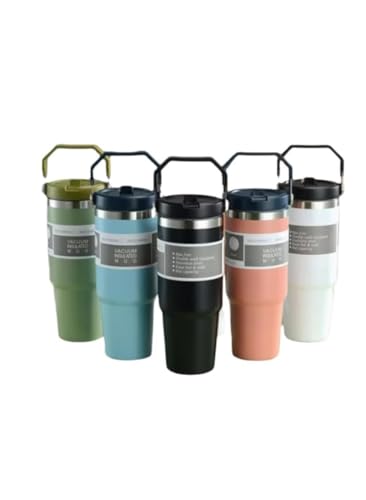 generic - كوب بمقبض وغطاء ماصة، كوب ستانلس ستيل معزول بتفريغ الهواء 900 مل، تصميم جدار مزدوج خالٍ من البيسفينول ايه، يحافظ على المشروبات ساخنة او باردة، سعة كبيرة للمنزل والمكتب والسفر (ازرق فاتح)