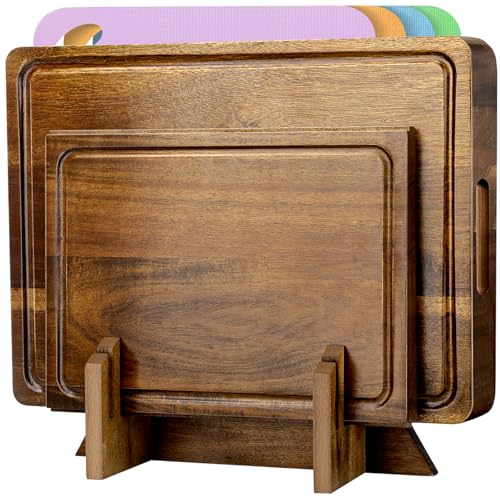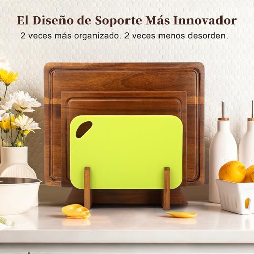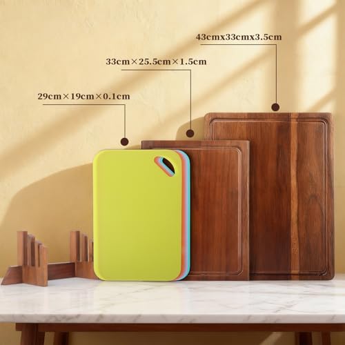 Muja - مجموعة الواح تقطيع من موجا مكونة من 3 قطع، مجموعة الواح تقطيع للمطبخ مع حامل، تتضمن 4 قطع من مفارش التقطيع البلاستيكية المرنة، مثالية كأدوات وأدوات مطبخ
