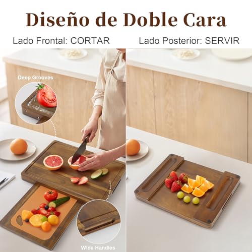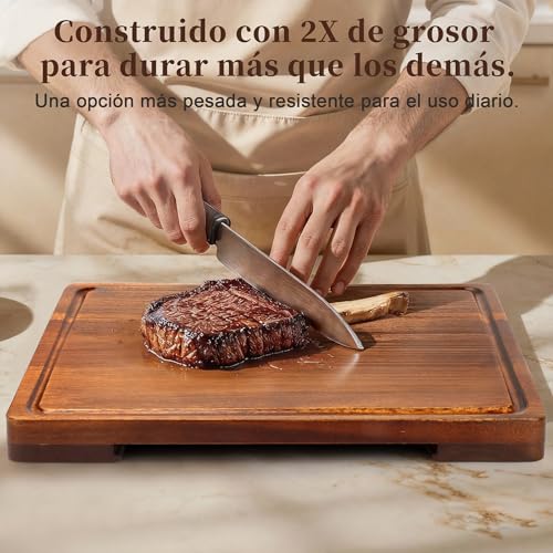 - متينة: ألواح التقطيع للمطبخ من موجا مصنوعة من خشب الأكاسيا بنسبة 100%. تتميز بسطح متين وعالي الجودة ولطيف على السكاكين لمنع الجروح والعلامات والبقع. بفضل هيكلها المتين، لن تخدش أو تتلف بمرور الوقت