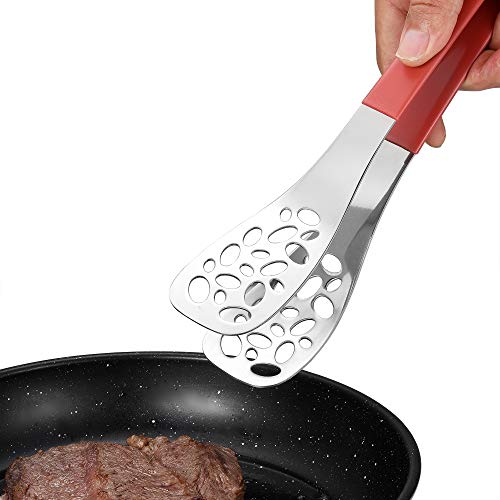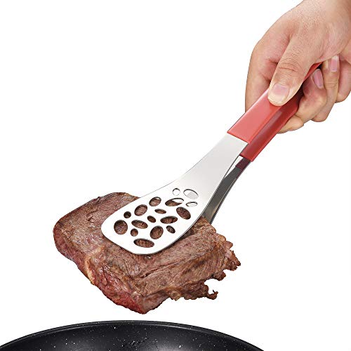 Mujo - ماسكة طعام للمطبخ من السيليكون بمقاس 25.4 سم - ستانلس ستيل، مقاومة للحرارة العالية حتى 248.89 درجة مئوية، للطهي وتقديم الطعام والشواء والسلطة من موجو