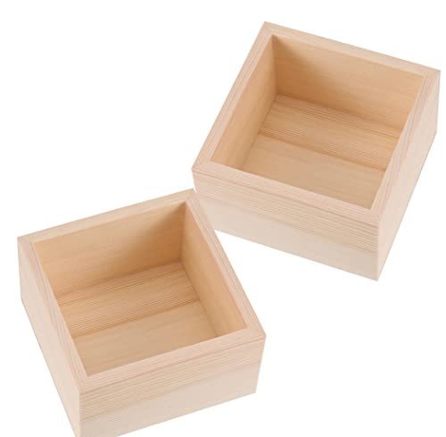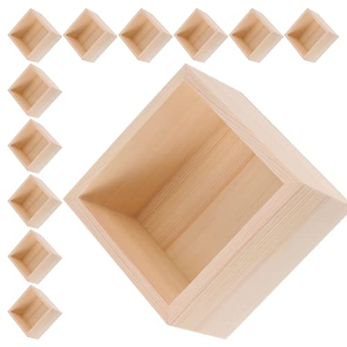 MUKCHAP - صندوق خشبي مربع بدون دهان من موكشاب عبوة 18 قطعة مقاس 4×4× 2.36 بوصة تخزين للحرف اليدوية مصنوع الخشب الطبيعي صغير لتخزين المقتنيات ديكور مكتب المنزل ووعاء لاصيص الزرع