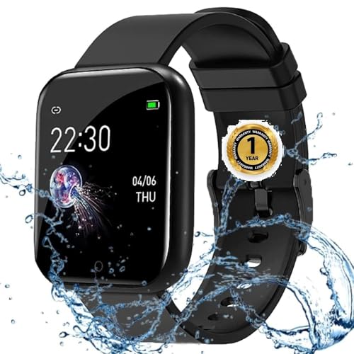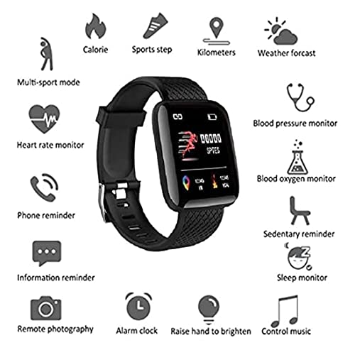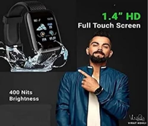 MUKTRICS - ساعة سمارت للرجال- مضادة للماء تعمل باللمس- بلوتوث مع جهاز تتبع لضغط الدم ومستشعر ضربات القلب والوظائف الاساسية (ساعة-C) ID116 اسود - فون واتش