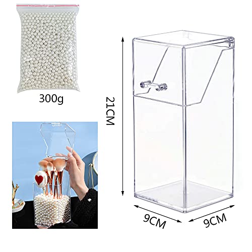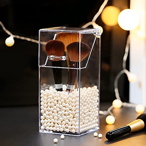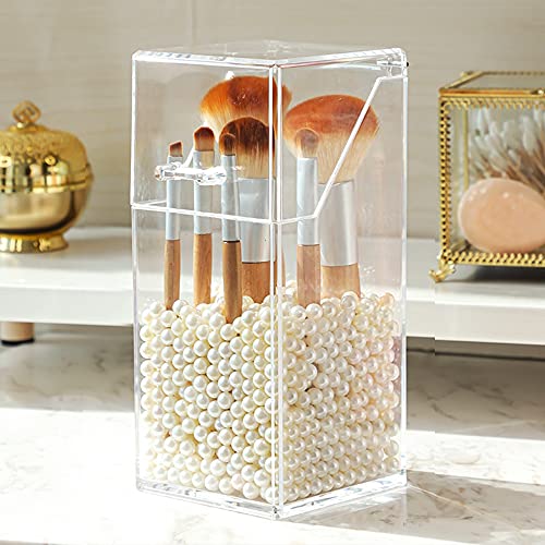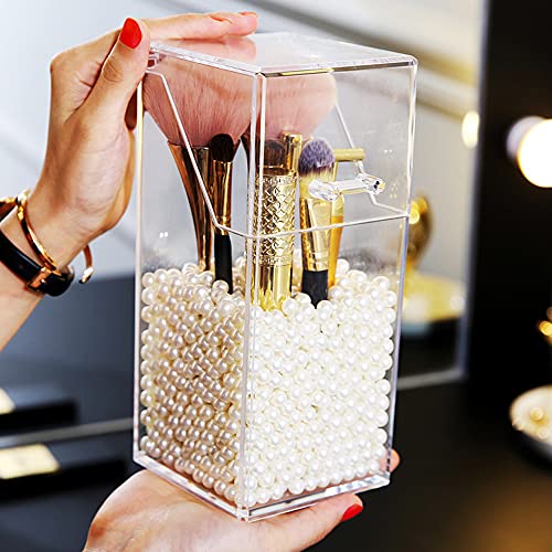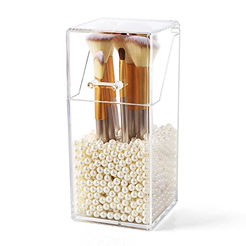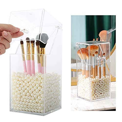 MULINHAI - حامل شفاف من الاكريليك مع غطاء وحبيبات لؤلؤ لعرض فرش المكياج للحمام
