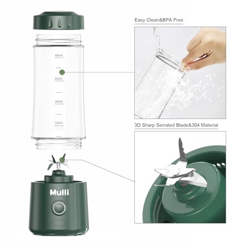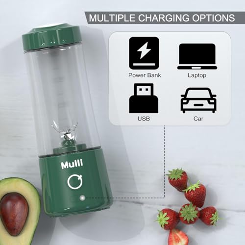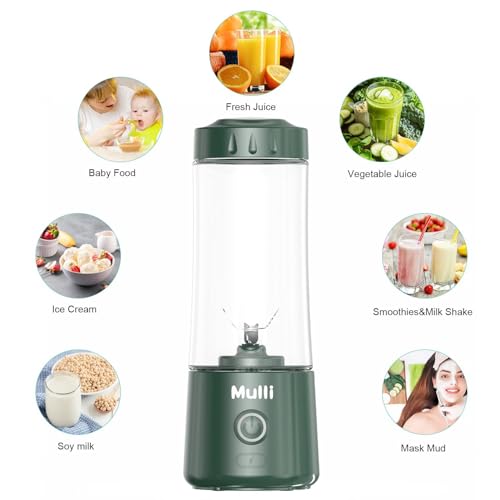 Mulli - مولي خلاط شخصي محمول بمنفذ USB للسموذي والمخفوقات، خلاط صغير مع ست شفرات للطعام والسفر وصالة الالعاب الرياضية