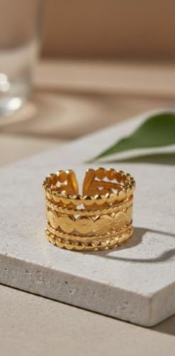Generic - خاتم مفتوح متعدد الطبقات من الستانلس ستيل - ذهبي