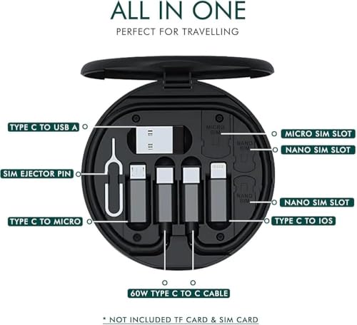 Generic - طقم كيبل شحن متعدد 4 في 1 يدعم شحن سريع حتى 60 واط مع صندوق منظم قابل للسحب، موصلات USB وType-C وMicro USB، مثالي للسفر والجوال والتابلت والباور بانك