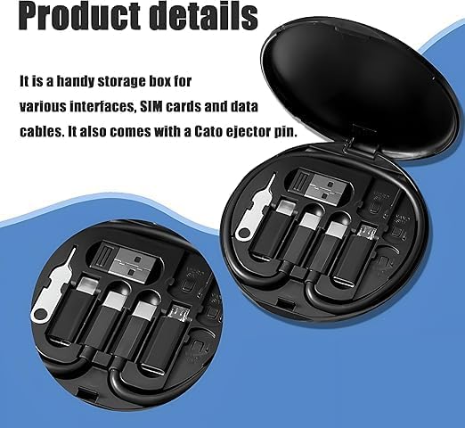 - علبة منظم قابلة للسحب تأتي داخل علبة منظم ذكية قابلة للسحب تساعد على ترتيب الكابلات ومنع التشابك، مع حجم صغير وخفيف يسهل حمله في الحقيبة أو الجيب، ويضمن الحفاظ على الكابلات من التلف.
