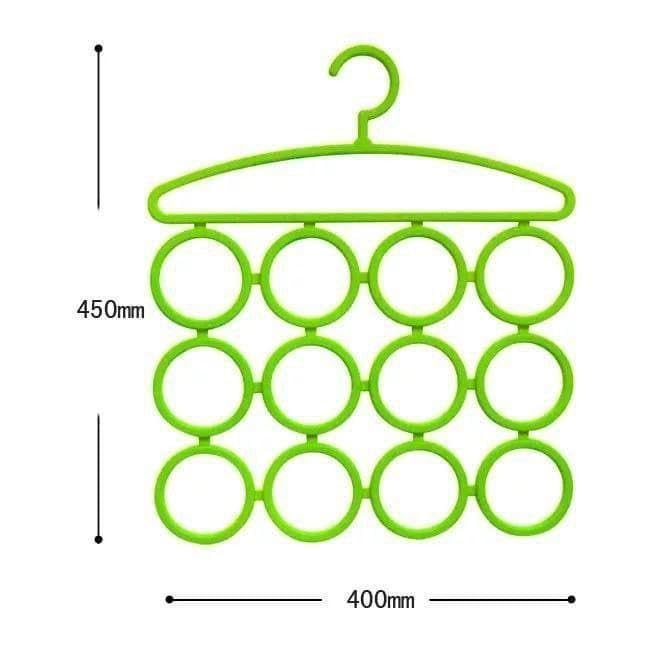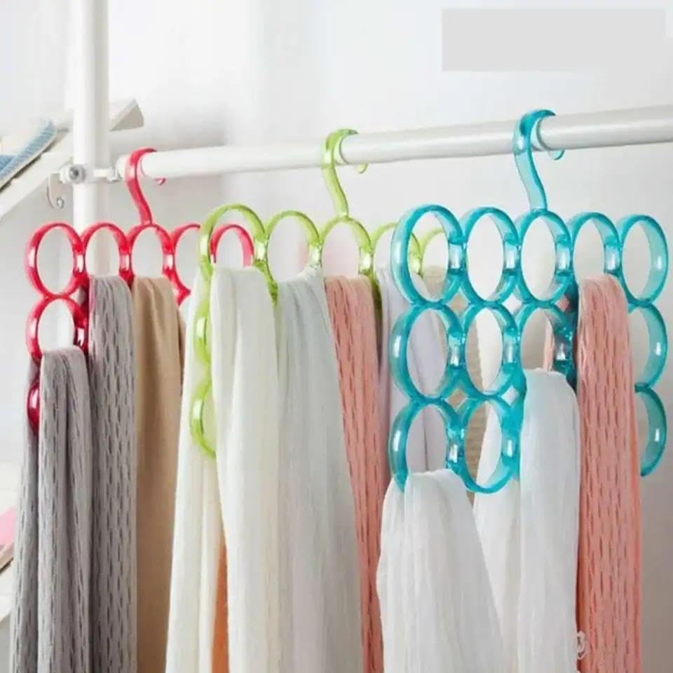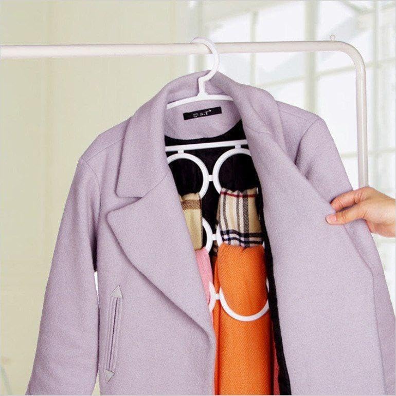 - يزيد منظم الشماعات متعدد الدوائر هذا من مساحة الخزانة الرأسية من خلال السماح بتعليق ما يصل إلى 12 ملحقًا مثل الأوشحة والأحزمة والشالات على وحدة واحدة، مما يزيل الفوضى ويجعل العناصر مرئية بسهولة ويمكن الوصول إليها في لمحة.