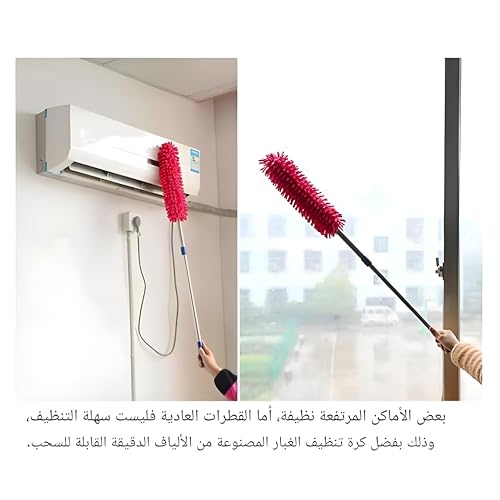 - تتميز فرشاة الغبار المصنوعة من المايكروفايبر بعمود معدني قابل للتمدد يمكن تعديله من 30 إلى 100 انش، مما يلغي الحاجة إلى السلالم أو التسلق المحفوف بالمخاطر للوصول إلى الأسقف العالية أو مراوح السقف أو العوارض الخشبية الكاتدرائية - مثالية لتنظيف المنزل والسيارة دون خدش الأسطح الحساسة.