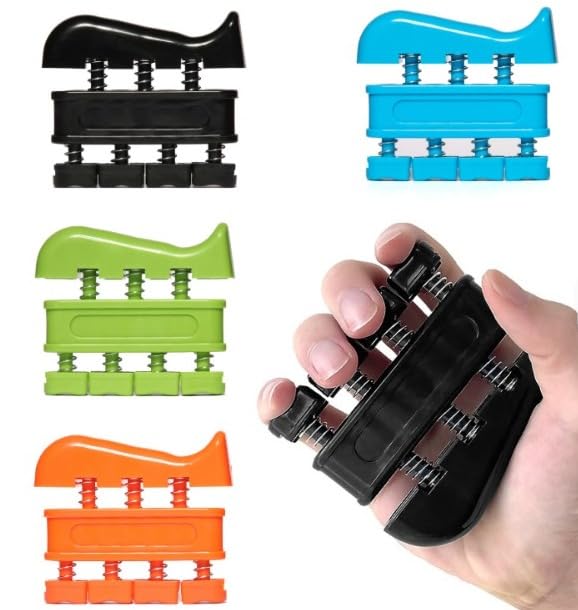 - مجموعة متكاملة: تتضمن 1 قطع من أجهزة تمرين الأصابع بألوان متنوعة - أسود وأزرق وأخضر وبرتقالي