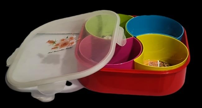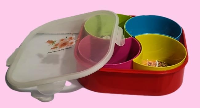 Generic - طبق تقديم بلاستيك متعدد الالوان مع غطاء