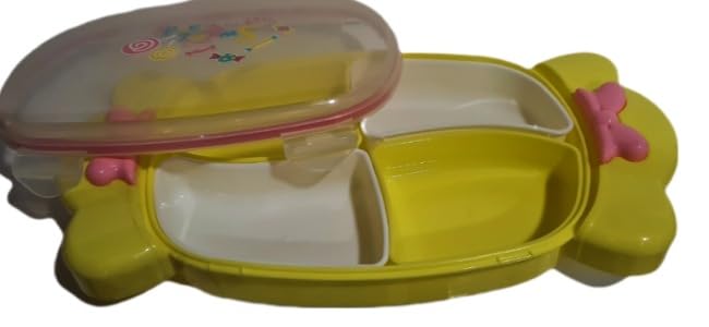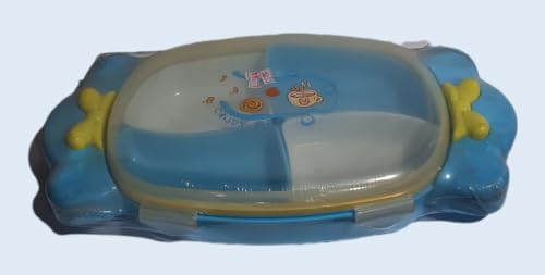 Generic - طبق تقديم طعام بلاستيكي متعدد الألوان مع غطاء أزرق