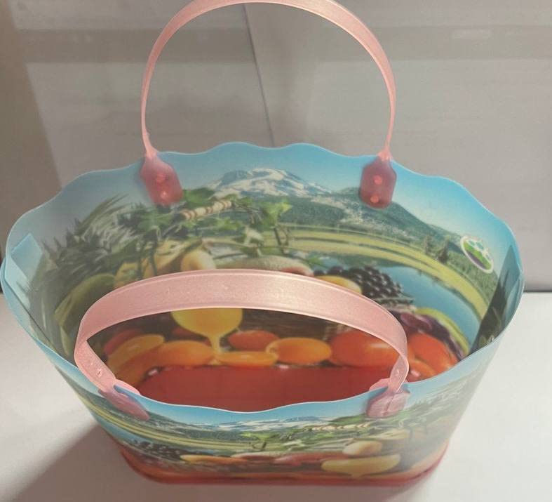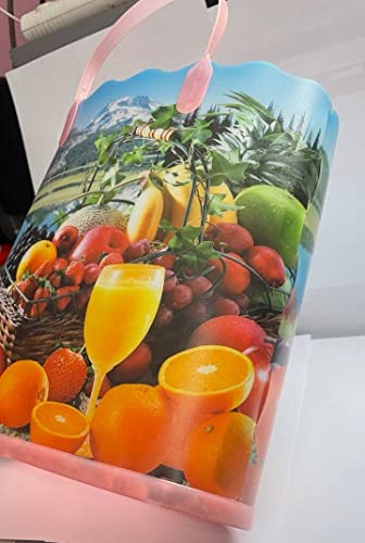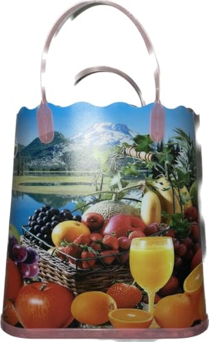 Generic - شنطة تسوق بلاستيك حريمى سيدات اشكال والوان متعدده - رسم فواكه و عصير مناسبه للمزل العصرى الحديث - بها قاعدة عرض 23سم ارتفاع 23سم عمق 8سم مزودة بيد من بلاستيك صلب