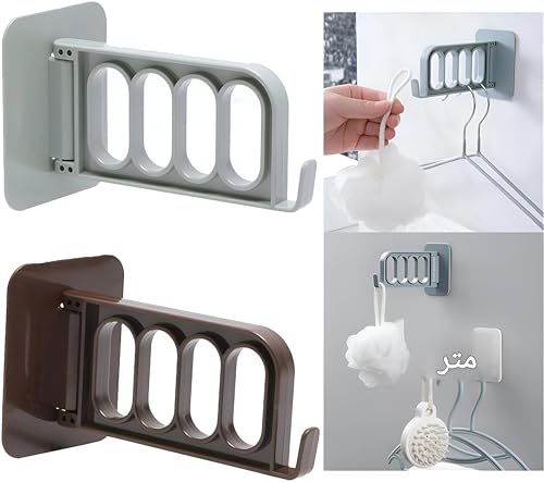 Generic - رف حائط متعدد الالوان - شماعة ملابس قابلة للطي مع رف تجفيف، منظم بلاستيكي لباب الحمام، موفر للمساحة، عبوة من قطعتين للغسيل والتخزين المريح