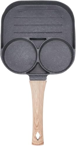 Generic - مقلاة جرانيت متعددة الاقسام 3 في 1 بمقبض خشبي - مقلاة مقسمة غير لاصقة للفطائر والبيض والاومليت والكريب الصغير والقطايف