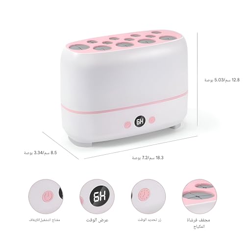 - 12 فتحة: يتميز مجفف الفرش الكهربائي بتصميم بـ 12 فتحة مختلفة، لذلك يمكنك تجفيف 12 فرشاة مكياج، وهي مناسبة لتنظيف وتجفيف جميع فرش المكياج تقريبًا.