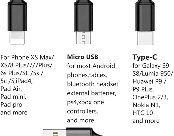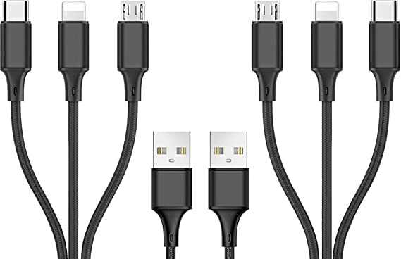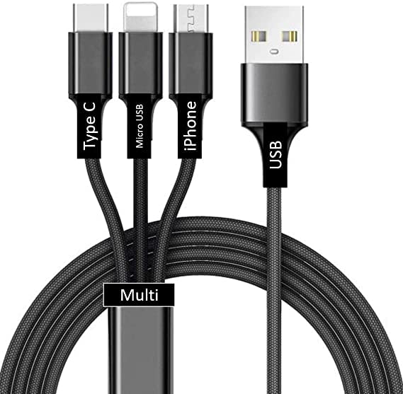 - كيبل شحن متعدد الاستخدامات (طول قطعتان) شاحن USB متعدد 3 في 1، سلك شحن سريع متعدد الاستخدامات مع نوع / وصلات مايكرو USB لمعظم الهواتف والتابلت (الشحن فقط)