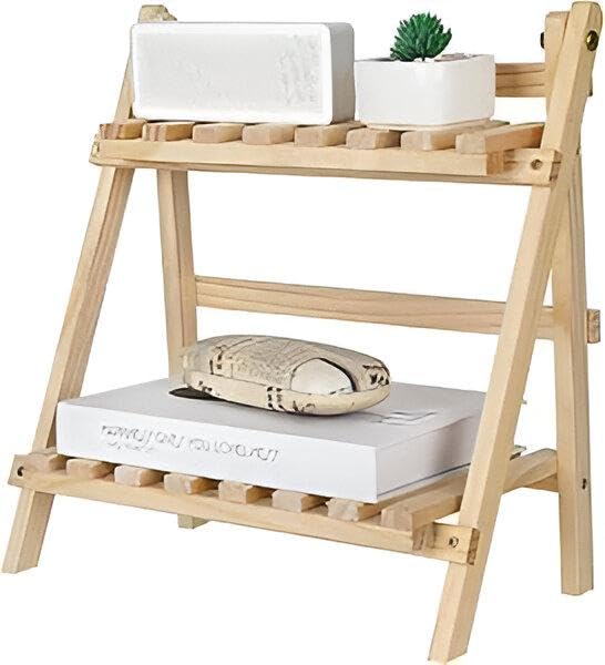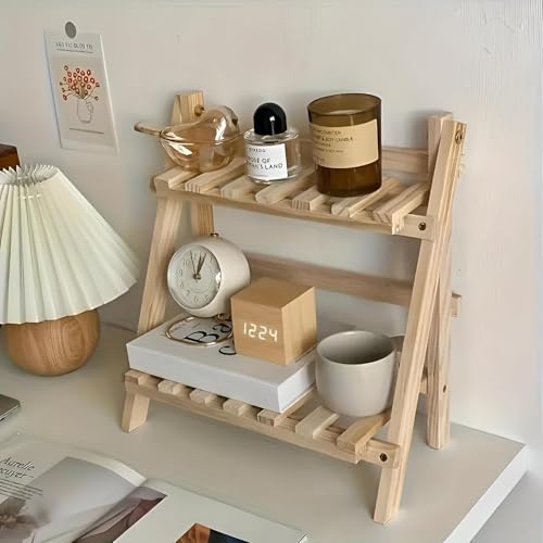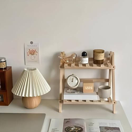Generic - حامل مكتب متعدد الوظائف - سطح خشبي شبه مقلوب مع رف مزدوج، حل تخزين قابل للطي وانيق للديكور الداخلي للمنزل العصري