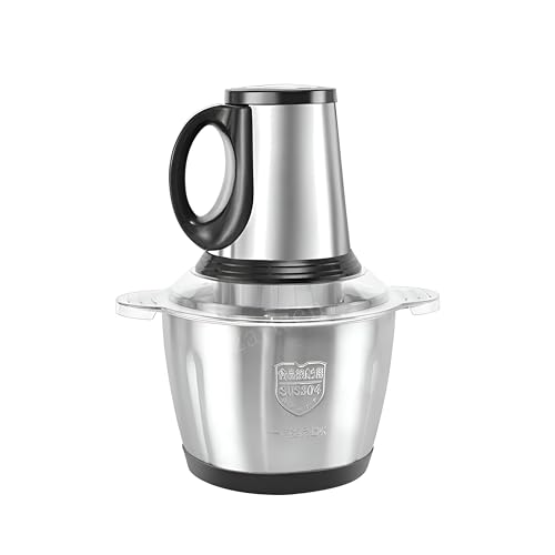 Generic - قطاعة مطبخ متعددة الوظائف - محضر طعام كهربائي بـ5 سرعات، سعة 3 لتر، 4 شفرات حادة، تصميم صغير من الستانلس ستيل للطبخ والفواكه والسلطة والتخييم والمهام المنزلية، لون فضي