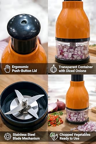 - تتميز بشفرة مزدوجة من الستانلس ستيل على شكل حرف Z تضمن تقطيعًا موحدًا ودقيقًا للبصل والثوم والزنجبيل والخضروات - مما يمنع القطع غير المتساوية الشائعة مع السكاكين التقليدية.