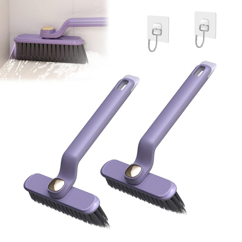Bysku - فرشاة تنظيف الشقوق الدوارة متعددة الوظائف، دوران 360 درجة بدون زوايا ميتة، أداة فرشاة بشعيرات صلبة لتنظيف فجوات الحمام والمطبخ المنزلي (أرجواني، عبوة من قطعتين)