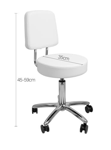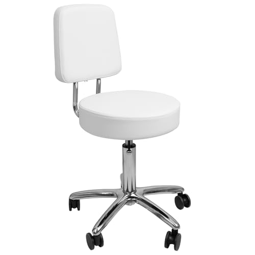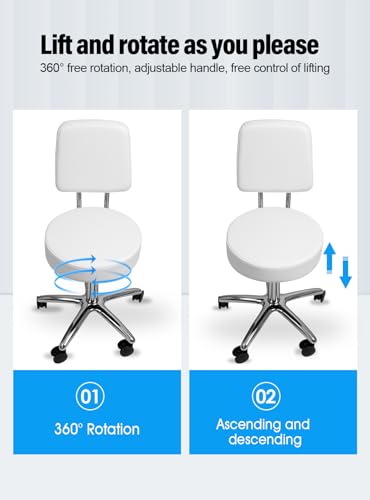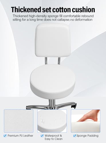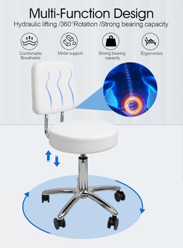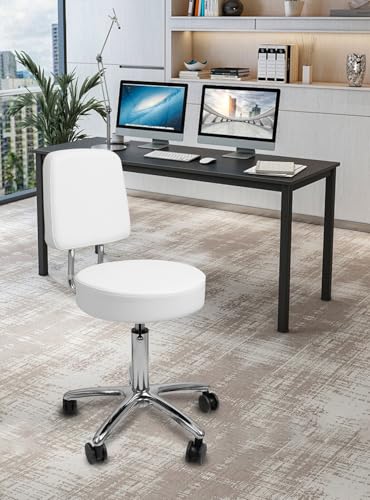 MEISHIDA - كرسي دوار متعدد الوظائف وقابل للتعديل مع دعم للظهر - مثالي للمنزل، والمكتب، والجراج، والمنتجعات الصحية - متين، ومريح، وسهل الحركة مع عجلات دوارة ناعمة (مقعد أبيض)