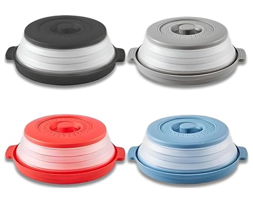 Generic - غطاء متعدد الوظائف - واقي رذاذ الميكروويف 10.2 انش مع غطاء، مصمم للطهي الامن وسهولة التخزين في مطبخك (4 قطع من الالوان المعروضة)