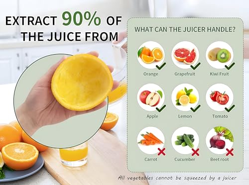 - صُمم هذا الجهاز من مواد متينة وعالية الجودة، مما يضمن قوة واستخدامًا يدوم طويلًا، حيث يستخلص العصير بكفاءة من مختلف الفواكه دون بذل جهد كبير.