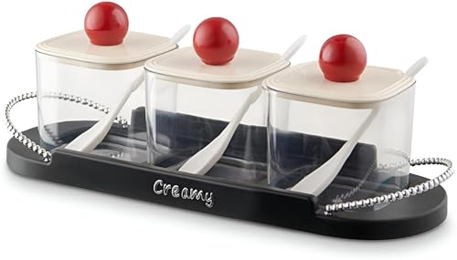- يحافظ التصميم الشفاف على جميع التوابل مرئية في لمح البصر، مما يلغي الحاجة إلى البحث في البرطمانات للحصول على ما تحتاجه - مثالي للطهي السريع أو الوجبات العائلية المزدحمة. تمنع الأغطية الآمنة الانسكابات، كما تقلل الملاعق المتضمنة من الحاجة إلى أدوات إضافية.