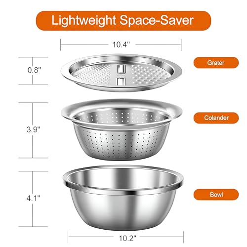 - تجمع أداة المطبخ متعددة الاستخدامات هذه بين ثلاث وظائف أساسية: مبشرة لتقطيع وتقطيع الجبن والخضروات وسلة تصريف للمعكرونة والنودلز ووعاء خلط كبير للتحضير. يتشابك كل مكون بسلاسة، مما يجعل إعداد الطعام وتنظيفه أسهل من أي وقت مضى. لا حاجة إلى مساحة عمل فوضوية مع أدوات متعددة!