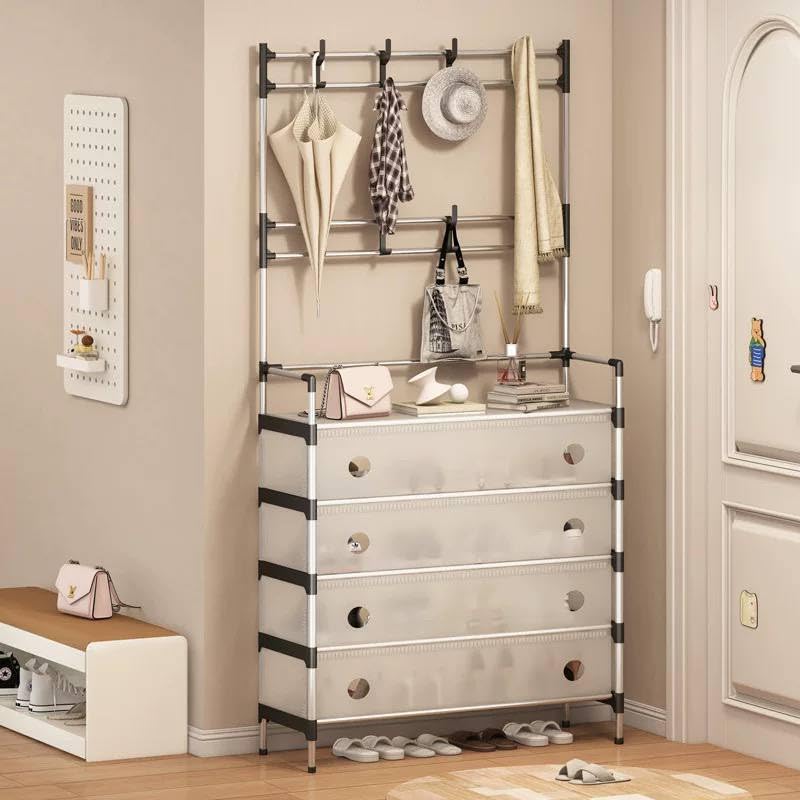 Generic - منظم تخزين متعدد الوظائف مع 4 أدراج، رف تعليق ورف أحذية، تصميم إطار معدني، حل خزانة للمدخل موفر للمساحة